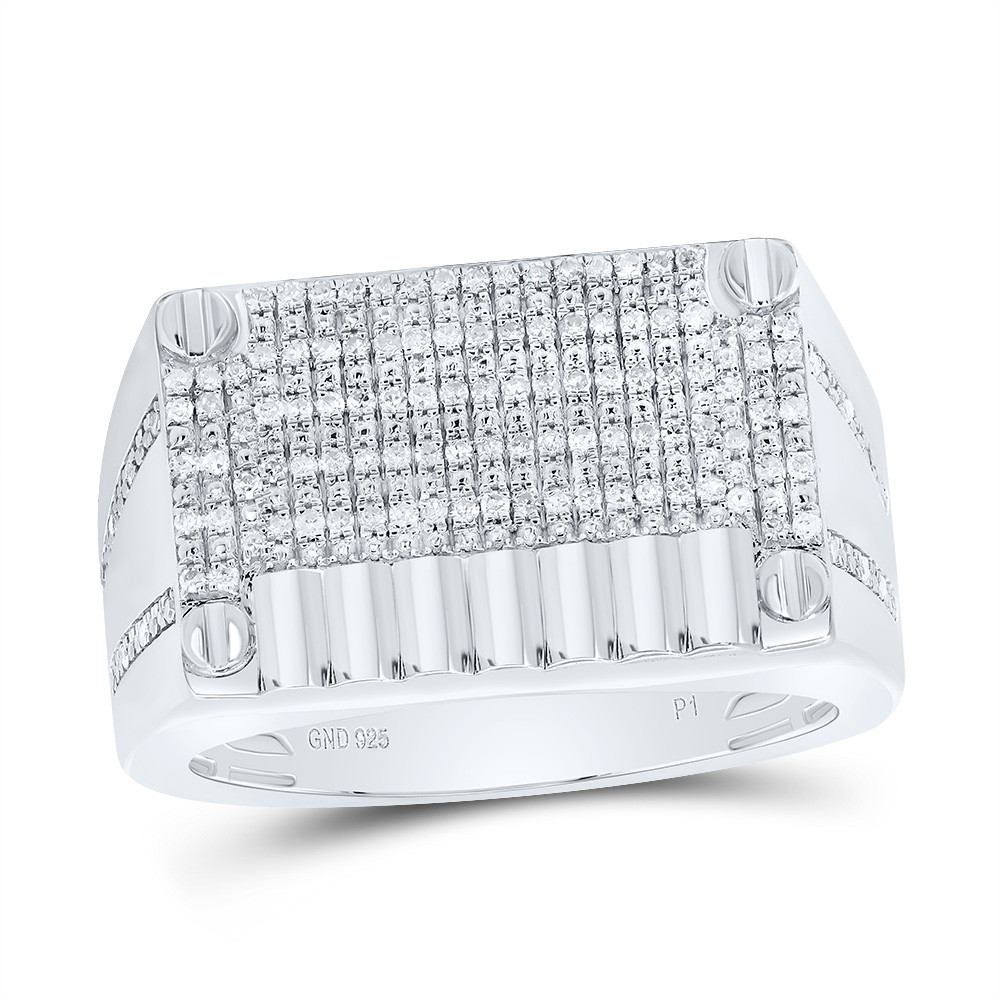 - 925 Sterling Silver Genuine Diamond Screw Top Cluster Faceted Pinky Ring 1/3 CT