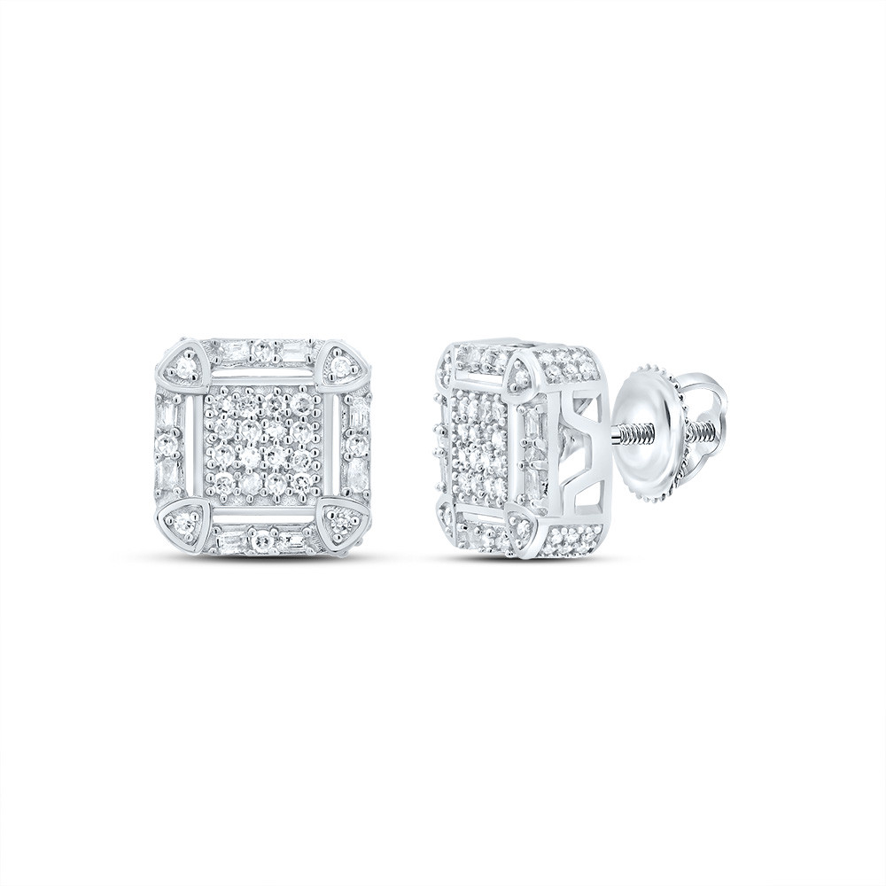 - 925 Sterling Silver Genuine Diamond Unisex 3D Cube Octagon Stud Earrings 3/8 CT