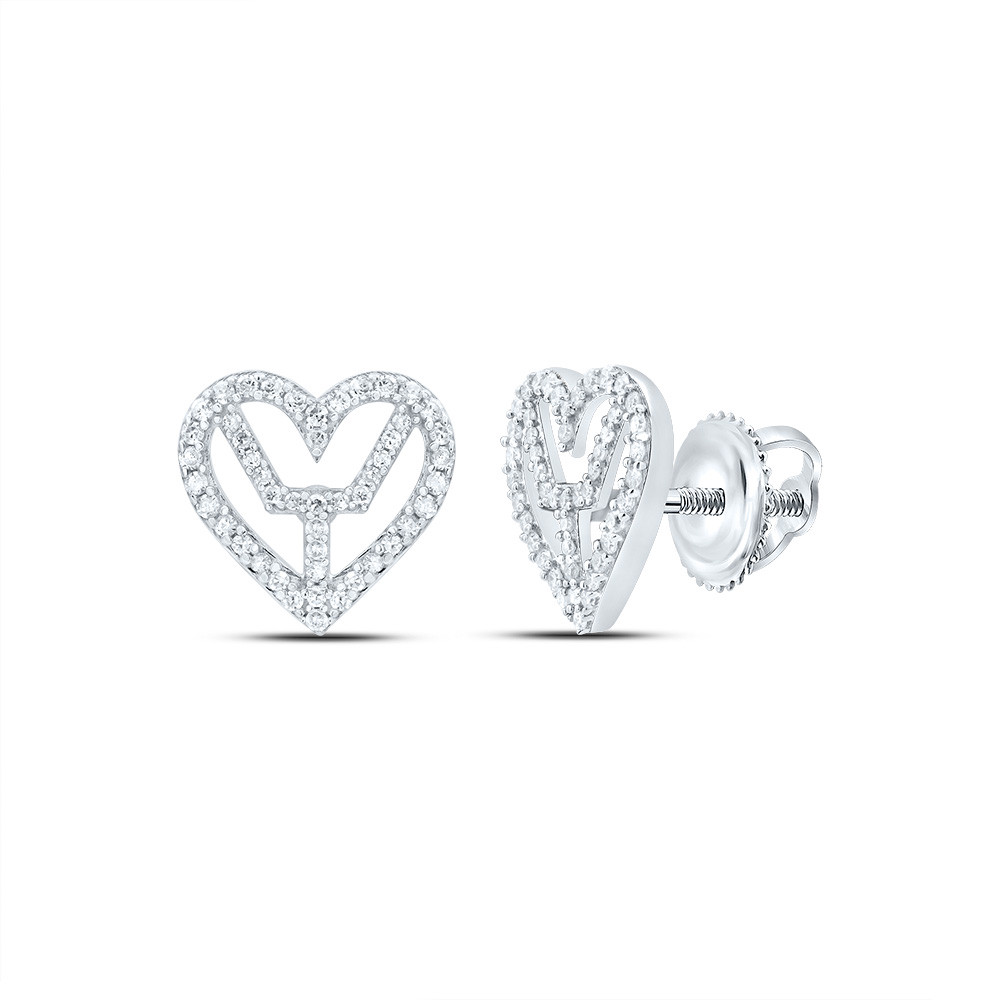 925 Sterling Silver Genuine Diamond Women's Bident in Heart Stud Earrings 3/8 CT