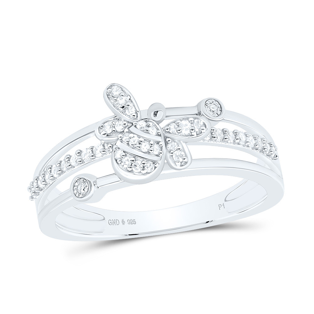 - 925 Sterling Silver Genuine Diamond Women's Bypass Station Honey Bee Ring 1/6 CT