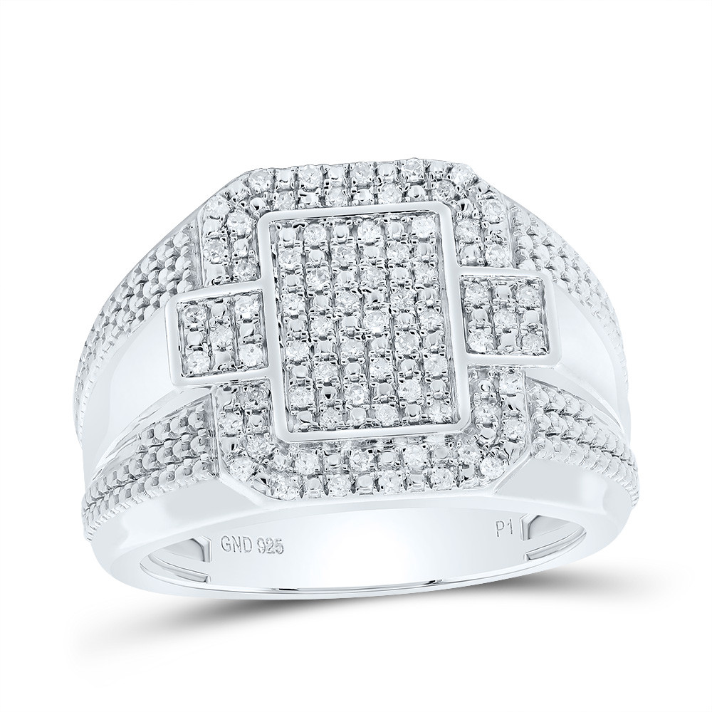 (8.71 gr. of 925 Sterling Silver | Total Carat Weight: 0.36 ct. t.w. of White Diamonds | Width: 17mm | Clarity: I1 - I2 | Color: H - I | Men's Round Cut Diamond Geometric | Octagon Halo Cross Stackable Pinky Ring Ring)
