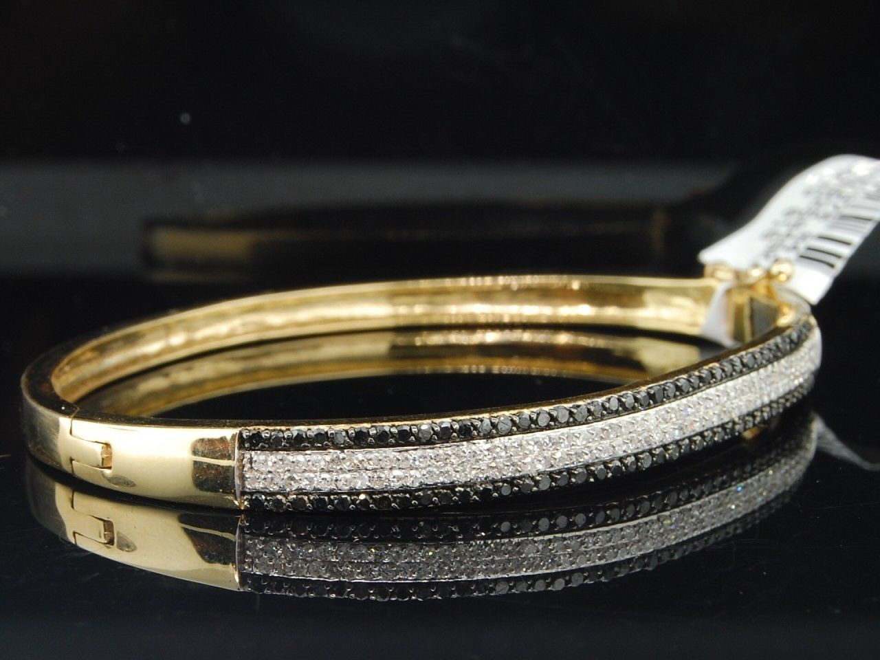 - Black Diamond Bangle Ladies 14K Yellow Gold Round Pave Bracelet 1.42 Tcw.