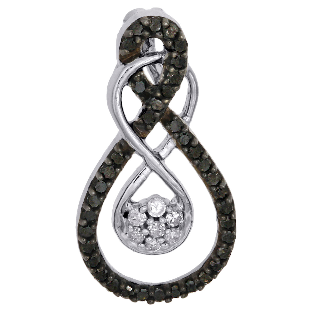 (1.3 gr. of 10K White Gold | Total Carat Weight: 0.25 ct. t.w. of Black and White Diamonds | Length: 0.80" (including bail) | Width: 0.40" | Clarity: I1 - I2 | Color: H - I | Women's Genuine Round Cut Diamond Infinity Fashion Charm)