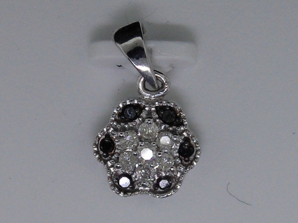 - Black Diamond Flower Pendant Ladies 10K White Gold Round Pave Charm 0.20 Tcw.