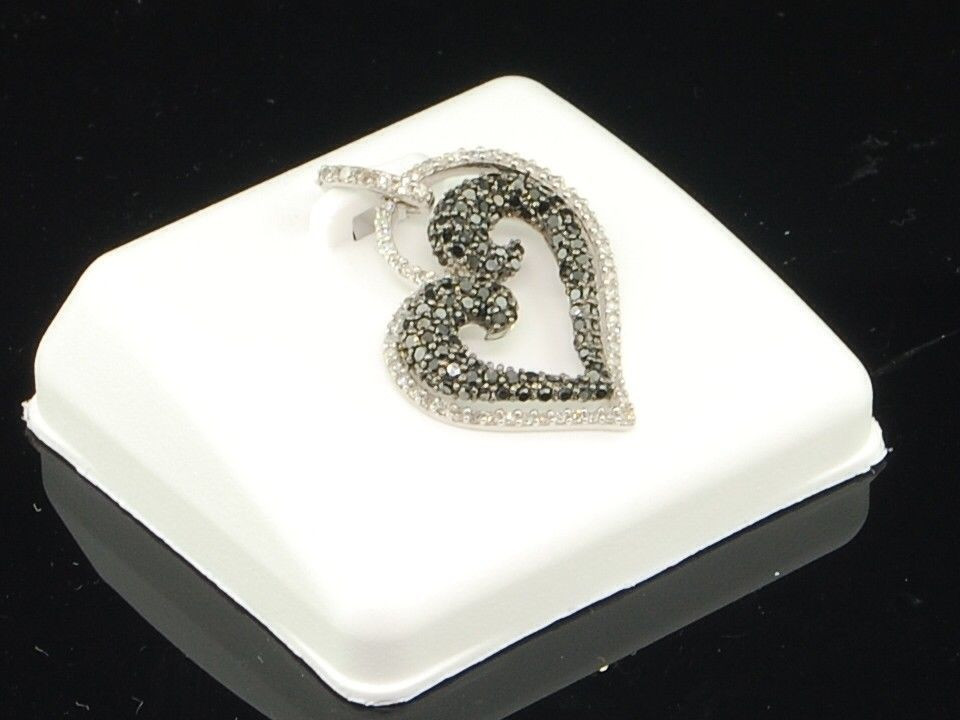 - Black Diamond Heart Pendant 10K White Gold Round Cut Pave Love Charm 0.84 Tcw.
