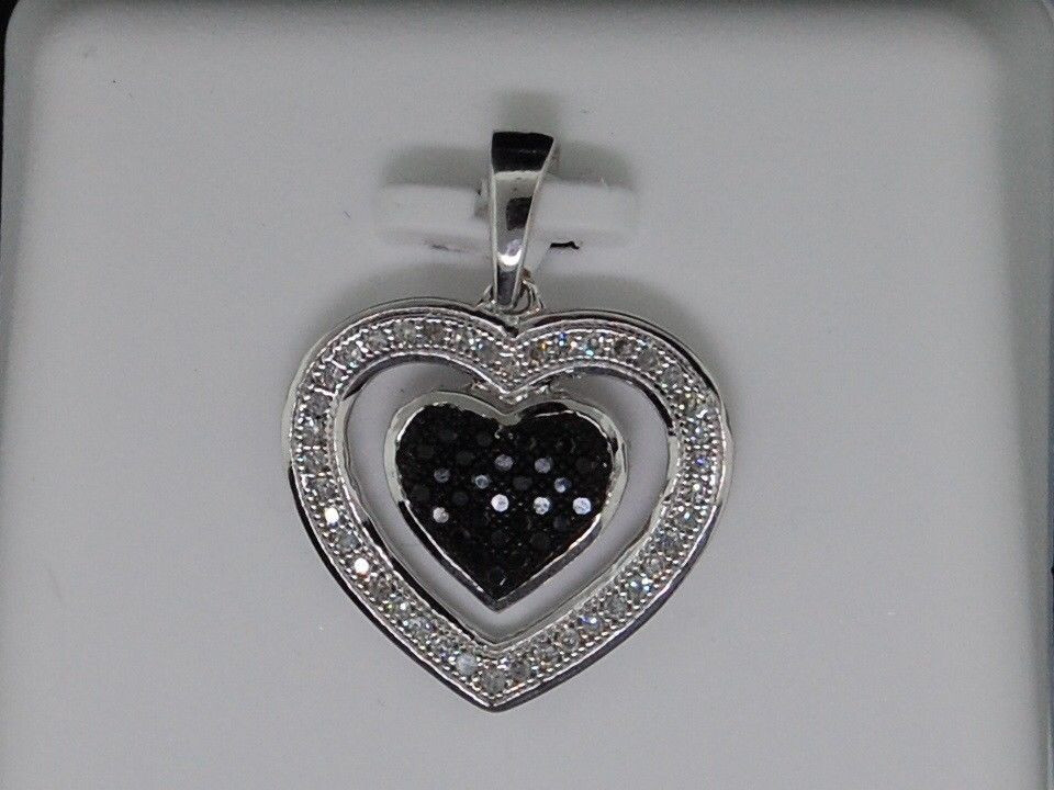 - Black Diamond Heart Pendant Ladies 10K White Gold Round Pave Charm 0.20 Tcw.