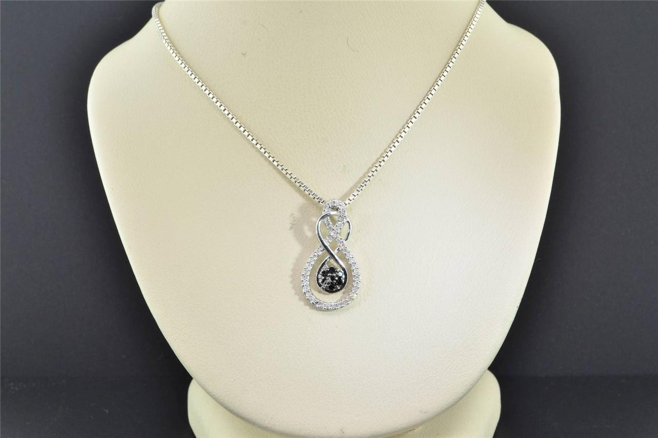 - Black Diamond Infinity Pendant .925 Sterling Silver 0.18 CT Charm with Chain