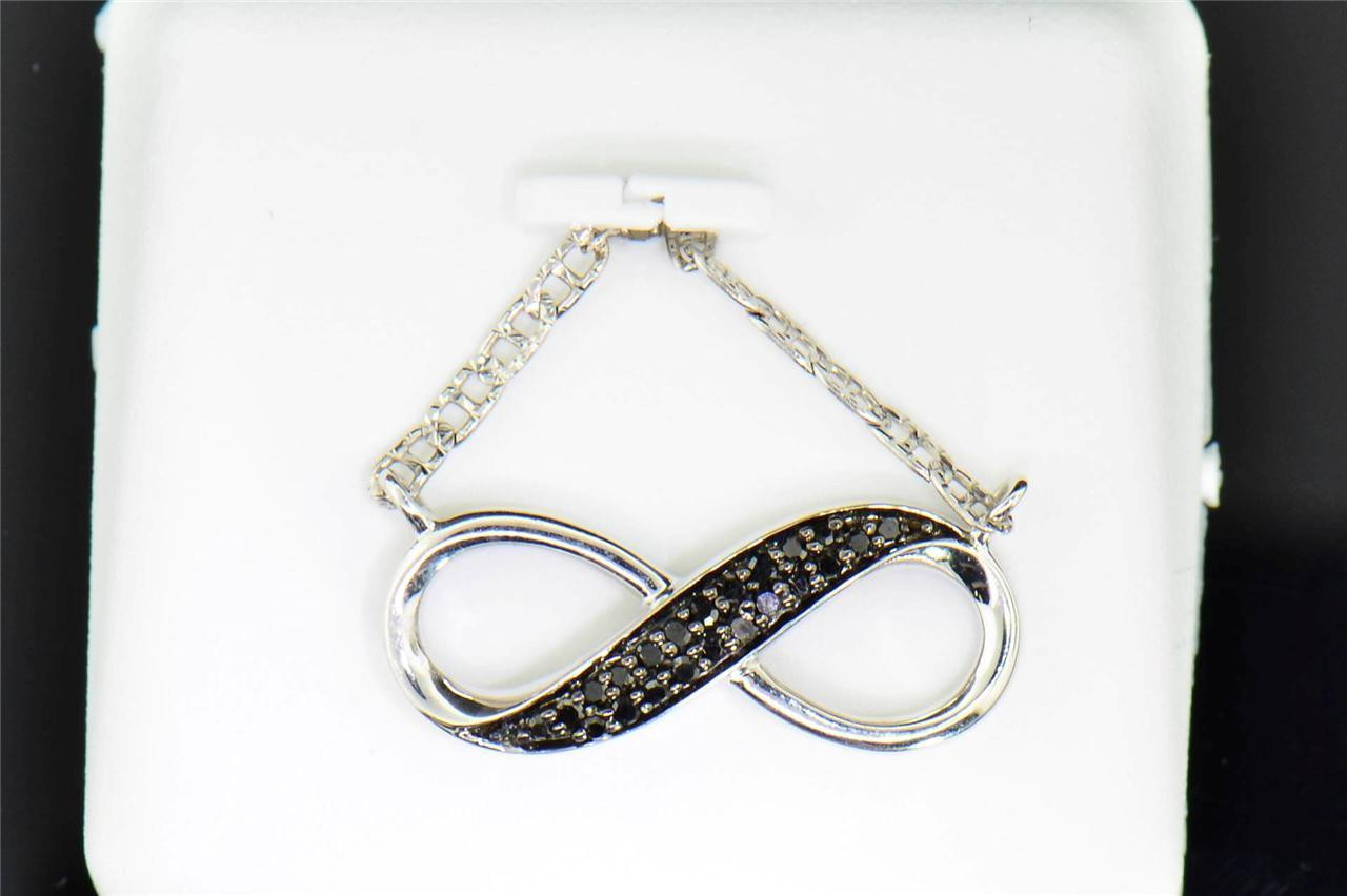 - Black Diamond Infinity Pendant .925 Sterling Silver .15 Ct Charm Necklace