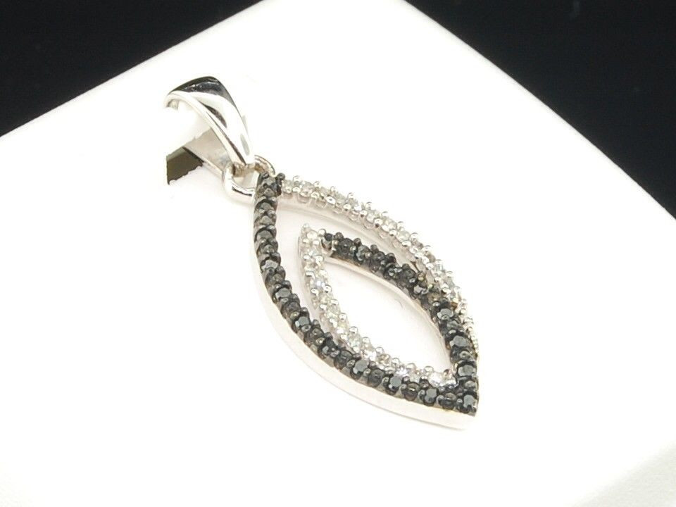 (1.4 grams of 10K White Gold | 0.13 total carats of black & white diamonds | 0.88" long & 0.40" wide | I1 - I2 Clarity & H - I Color | Fashion Diamond Pendant / Charm)