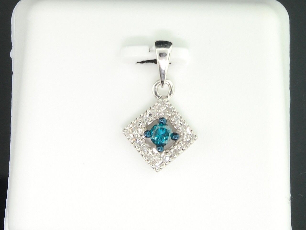 - Blue Diamond Solitaire Pendant Ladies 10K White Gold Round Pave Charm 0.21 Tcw.