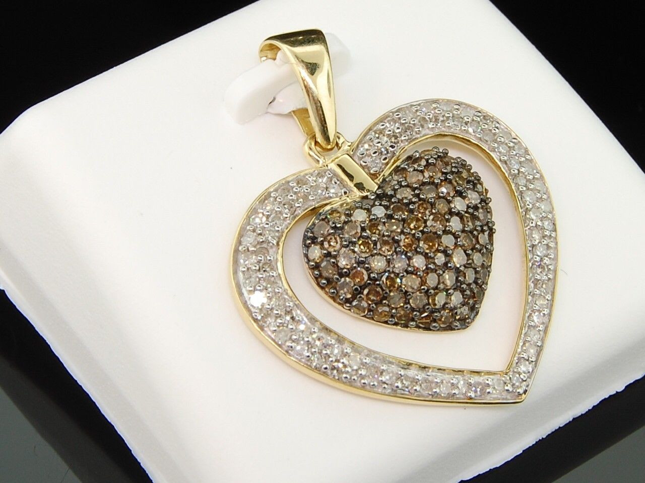 - Brown Diamond Heart Pendant 10K Yellow Gold Round Pave Love Charm 0.99 Tcw.