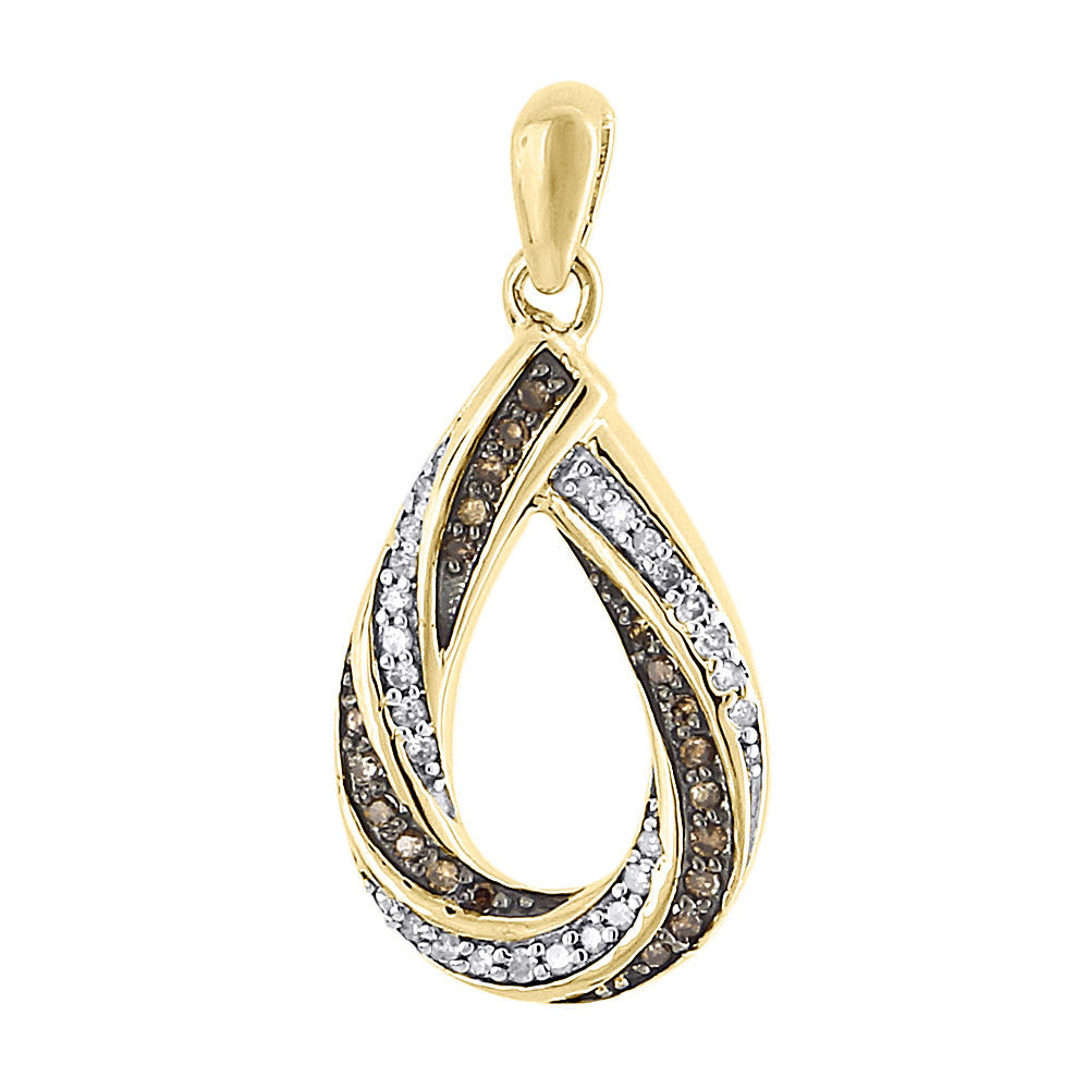 - Brown Diamond Pendant Ladies 10K Yellow Gold Teardrop Charm 0.25 CT.
