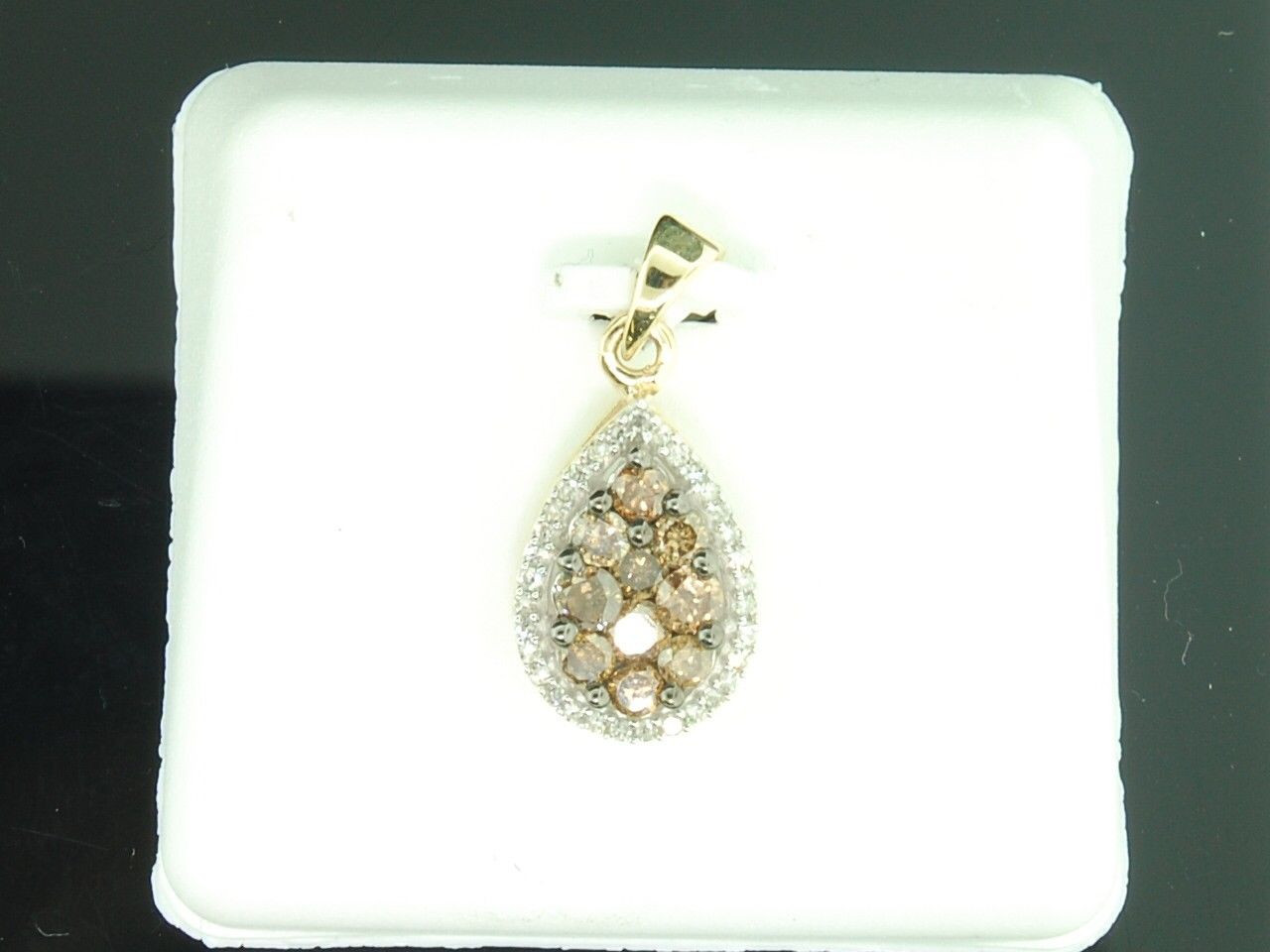 - Brown Diamond Teardrop Pendant Ladies 10K Yellow Gold Round Cut Charm 0.81 Tcw.