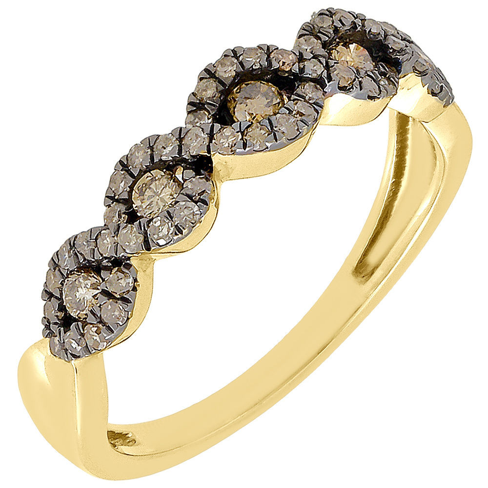 - Brown Diamond Wedding Band 14K Yellow Gold Round Solitaire Infinity Ring 0.48 Ct
