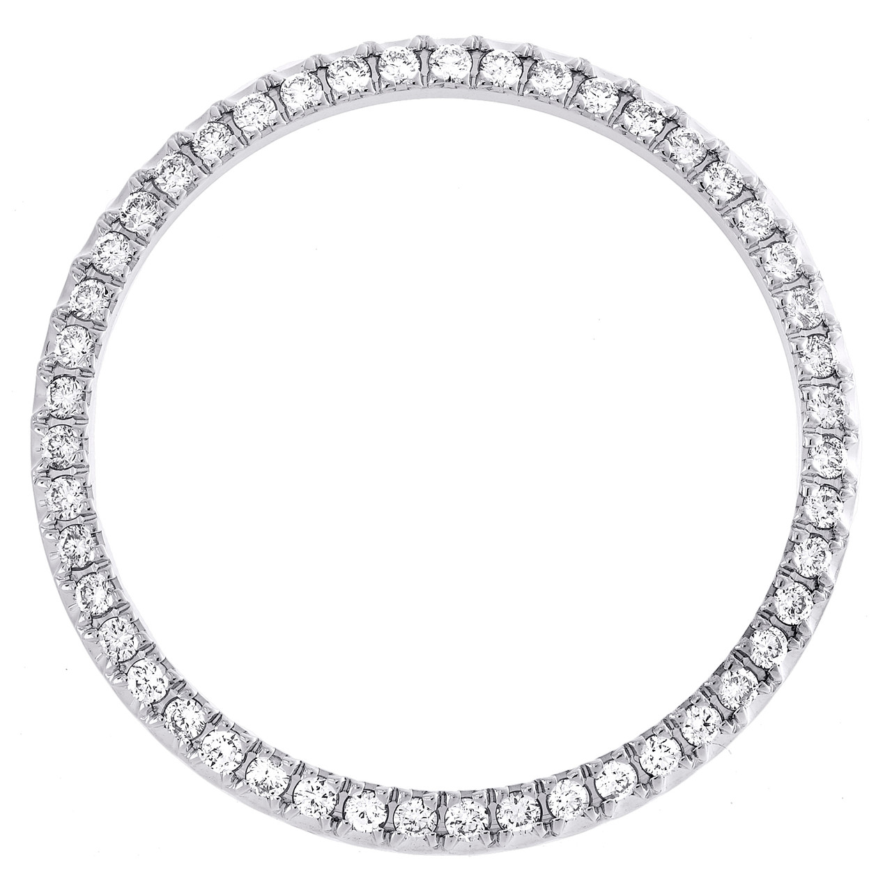 A brand new custom made U-Cut diamond bezel to fit Rolex Datejust 36mm Watch. This Prong bezel is compatible with Rolex Datejust 36mm models. The Diamonds are hand set for perfect finish. This bezel features 1.20 ct. t.w. of genuine natural Round diamonds. All diamonds are SI1 - SI2 clarity and H - I color. Bezel is crafted in White Gold Plated Alloy and weighs approx. 4.2 gr.The Prong set bezel is a unique look and upgrades the classic DateJust Rolex.