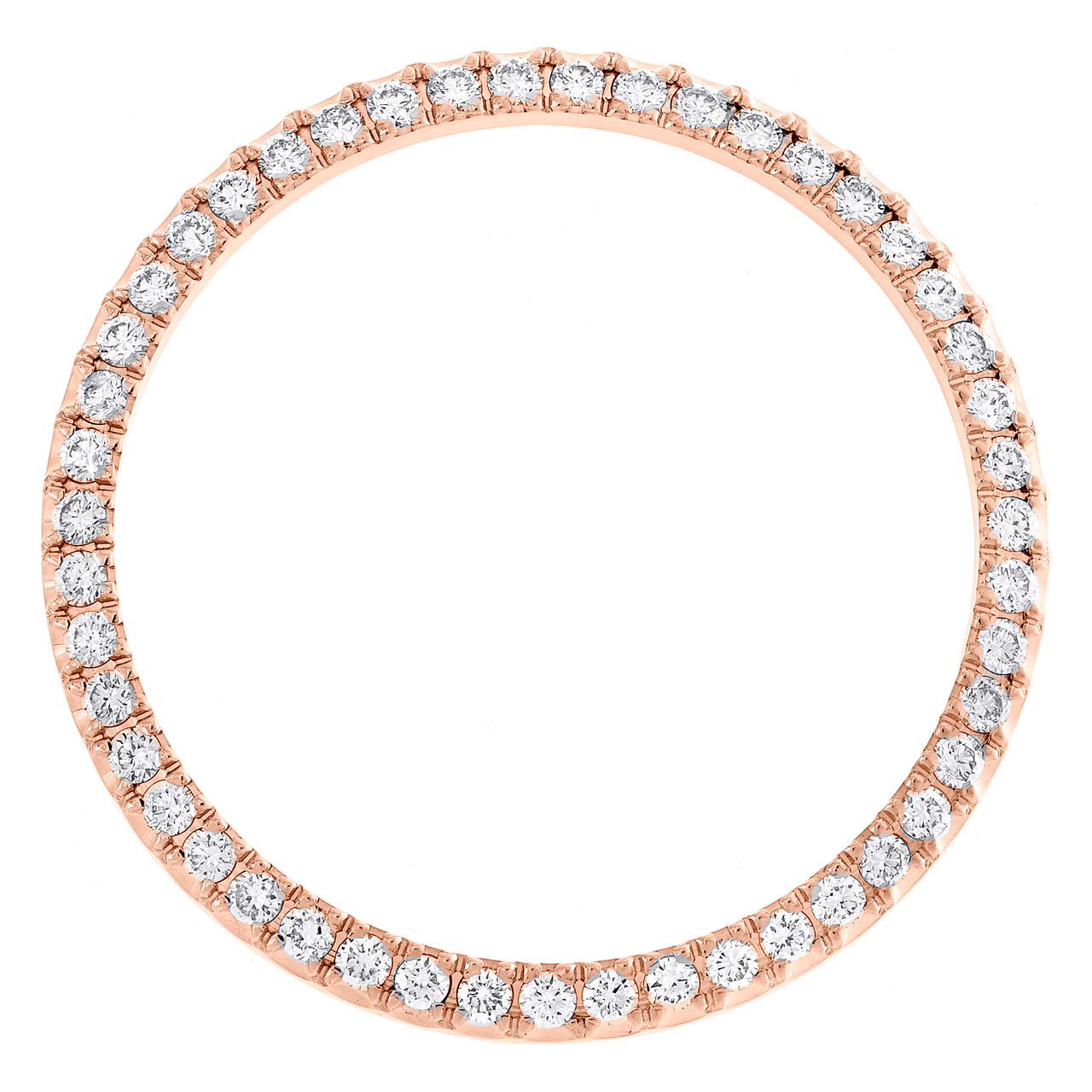 A brand new custom made U-Cut diamond bezel to fit Rolex Datejust 36mm Watch. This Prong bezel is compatible with Rolex Datejust 36mm models. The Diamonds are hand set for perfect finish. This bezel features 1.40 ct. t.w. of genuine natural Round diamonds. All diamonds are SI1 - SI2 clarity and H - I color. Bezel is crafted in Rose Gold Plated Alloy and weighs approx. 4.3 gr.The Prong set bezel is a unique look and upgrades the classic DateJust Rolex.