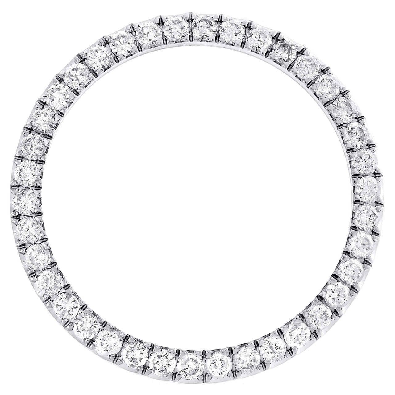 A brand new custom made U-Cut diamond bezel to fit Rolex Datejust 36mm Watch. This Prong bezel is compatible with Rolex Datejust 36mm models. The Diamonds are hand set for perfect finish. This bezel features 3.15 ct. t.w. of genuine natural Round diamonds. All diamonds are SI1 - SI2 clarity and H - I color. Bezel is crafted in White Gold Plated Alloy and weighs approx. 5.4 gr.The Prong set bezel is a unique look and upgrades the classic DateJust Rolex.