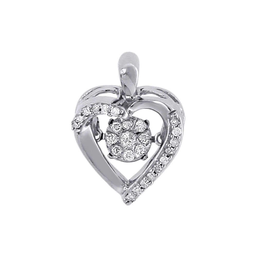 - Dancing Diamond Heart Pendant Ladies 10K White Gold Necklace 0.16 CT.