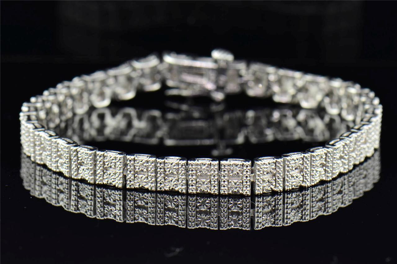 Diamond Bracelet Pave Fanook Set Designer Ladies .925 Sterling Silver 7" 0.33 Ct