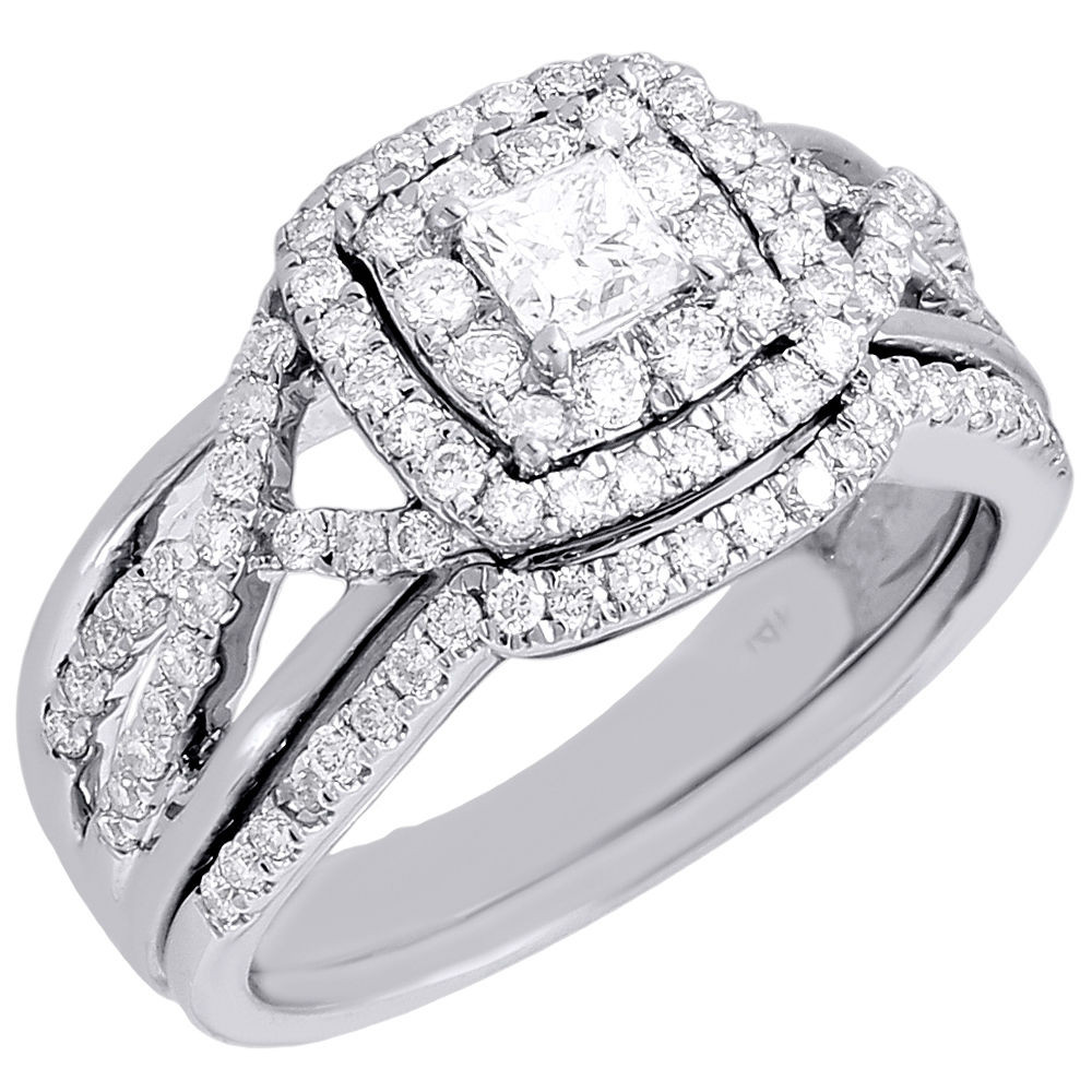 - Diamond Bridal Set Ladies Princess Solitaire White Gold Wedding Ring 0.97 Ct.