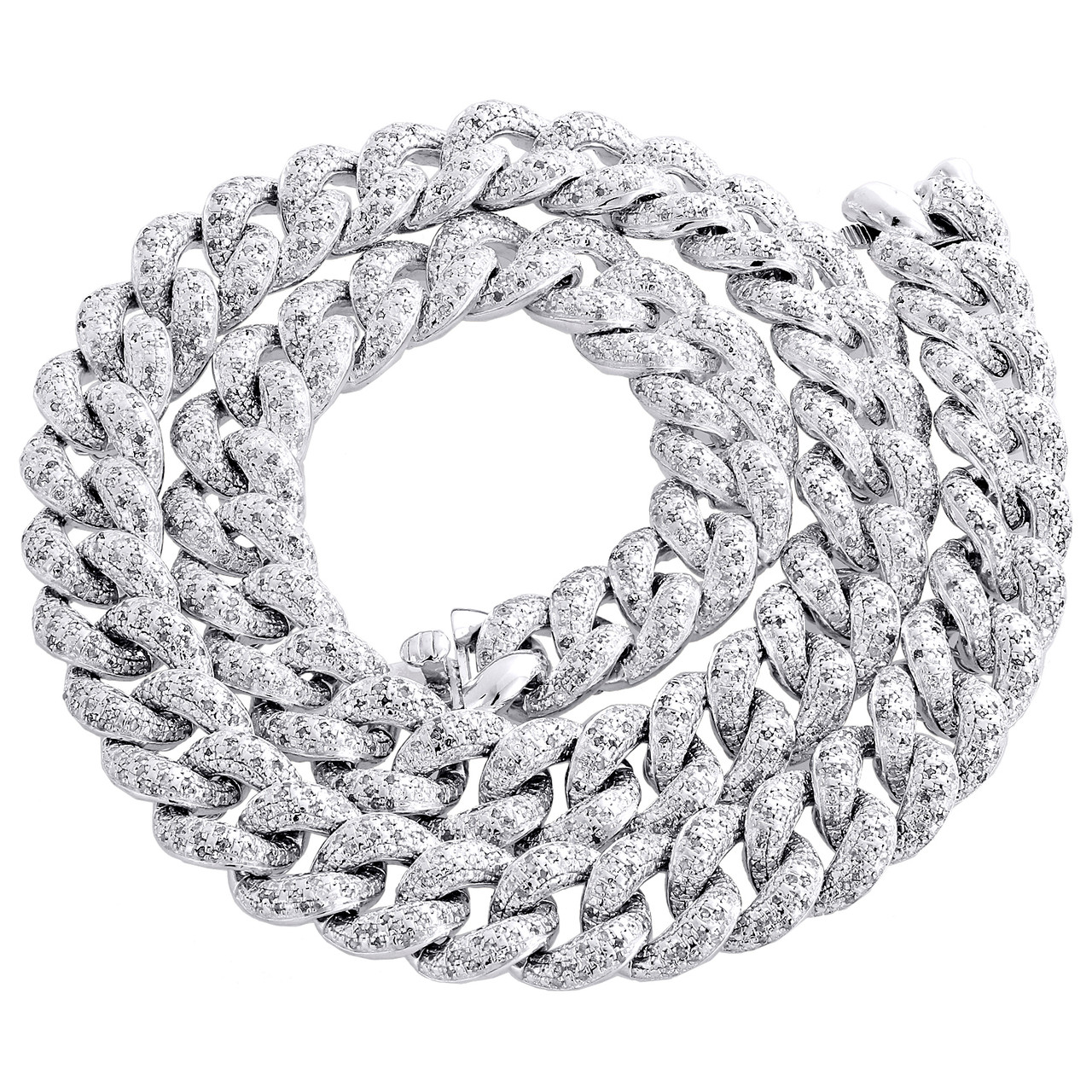 - Diamond Choker Miami Cuban Link Chain Sterling Silver 12mm Necklace 17.8" | 6 CT