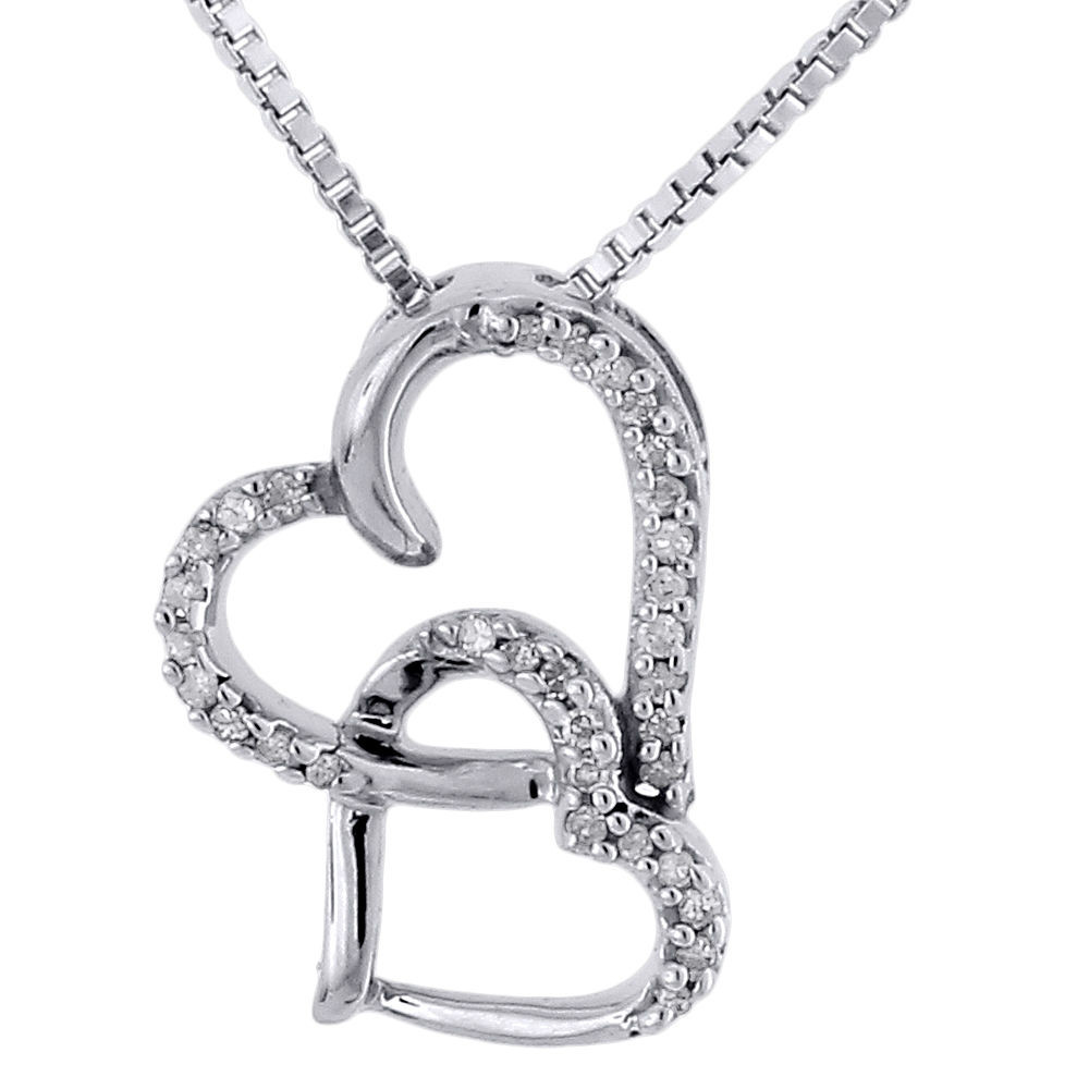 - Diamond Double Heart Pendant 10k White Gold Charm Necklace with Chain .10 Tcw