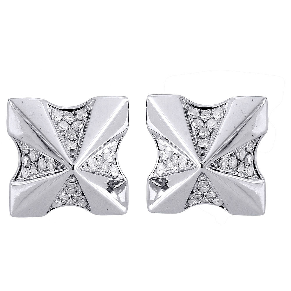 - Diamond Earrings 10K White Gold Mens Round Cut Square Studs Screw-Back 0.22 Tcw.