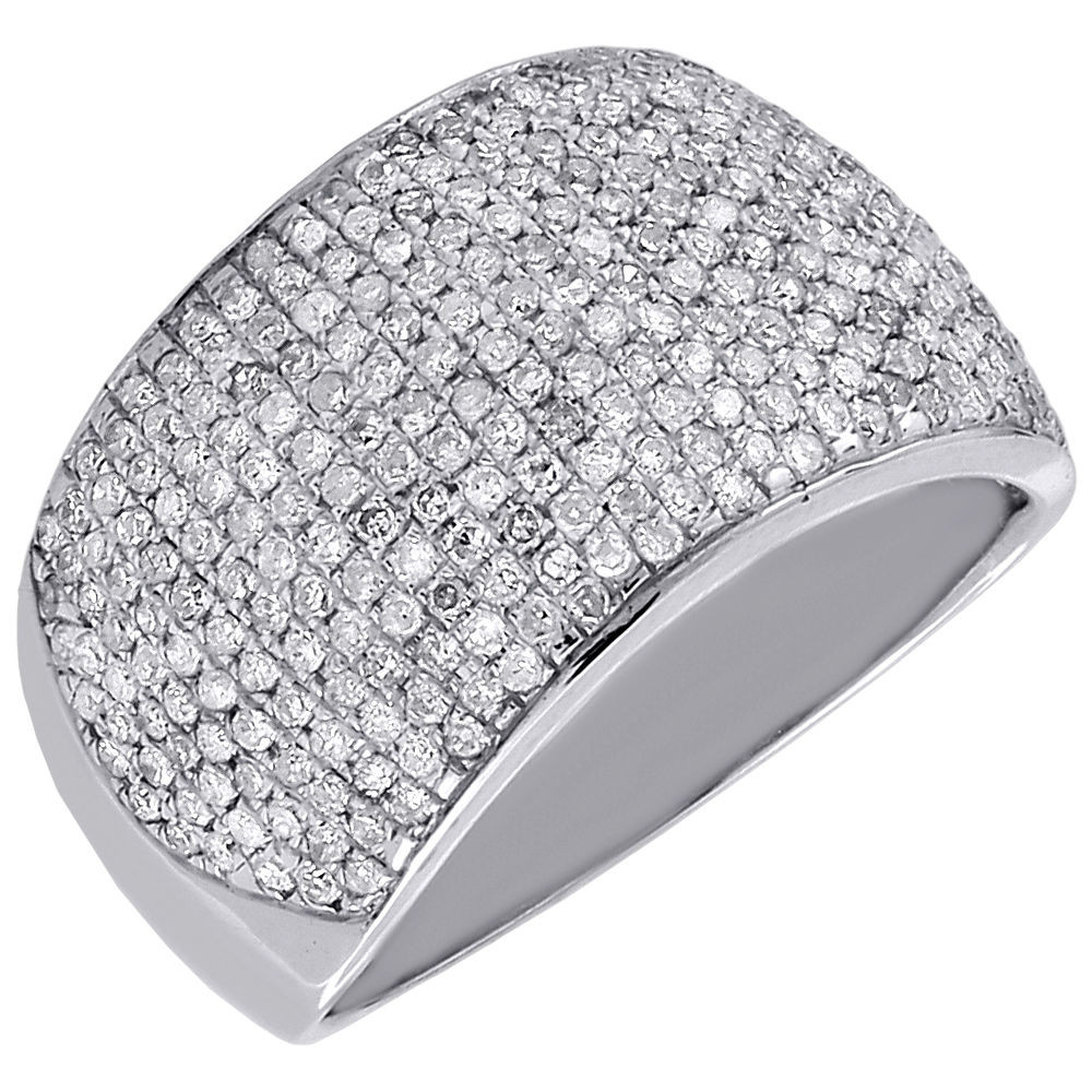 - Diamond Fashion Band Ladies 10K White Gold Round Pave Cocktail Ring 1 Tcw.