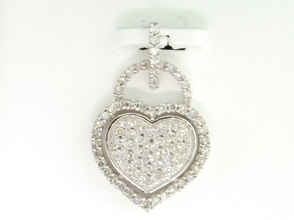 - Diamond Heart Pendant Ladies 10K White Gold Pave Round Love Charm 1/4 Tcw.