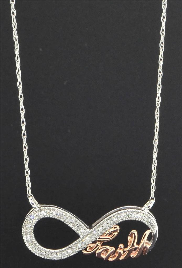 - Diamond Infinity Pendant 10K White & Rose Gold 0.10 CT. Faith Charm