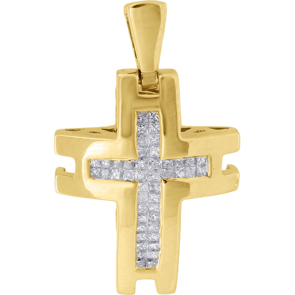 - Diamond Mini Princess Cut Domed Cross Pendant 10K Yellow Gold Charm 0.37 Ct.