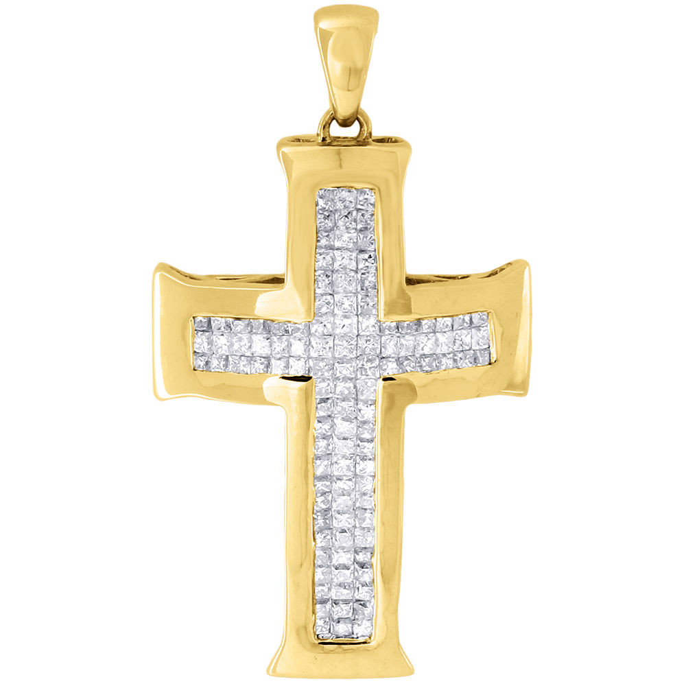 - Diamond Mini Princess Cut Domed Cross Pendant 10K Yellow Gold Charm 0.79 Ct.