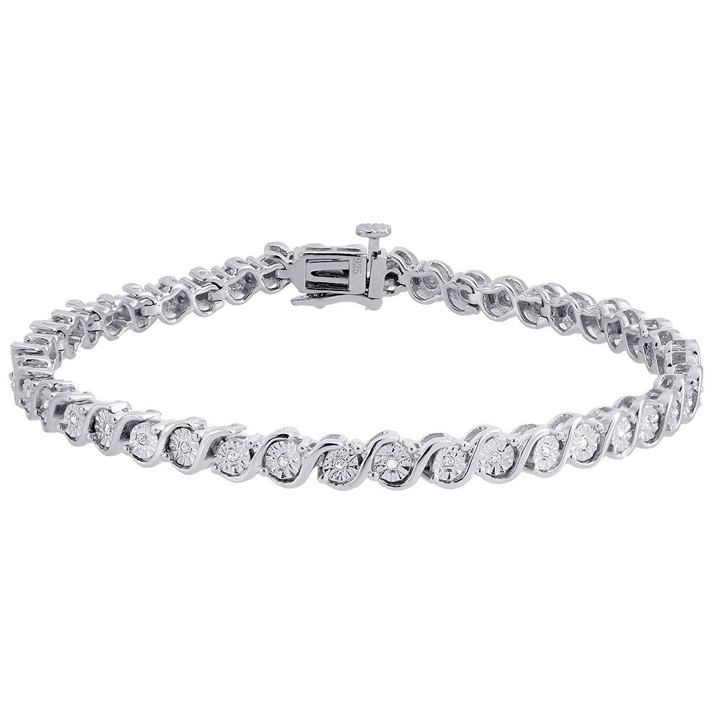 - Diamond S-Link Tennis Bracelet Ladies .925 Sterling Silver Round Cut 7" 0.11 Ct