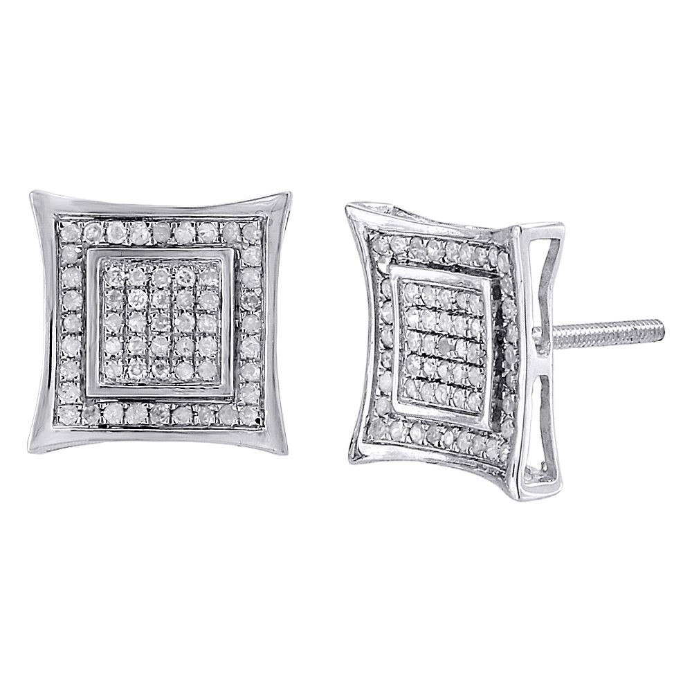 - Diamond Square Kite Studs 10K White Gold Round Pave Fashion Earrings 0.29 Tcw.