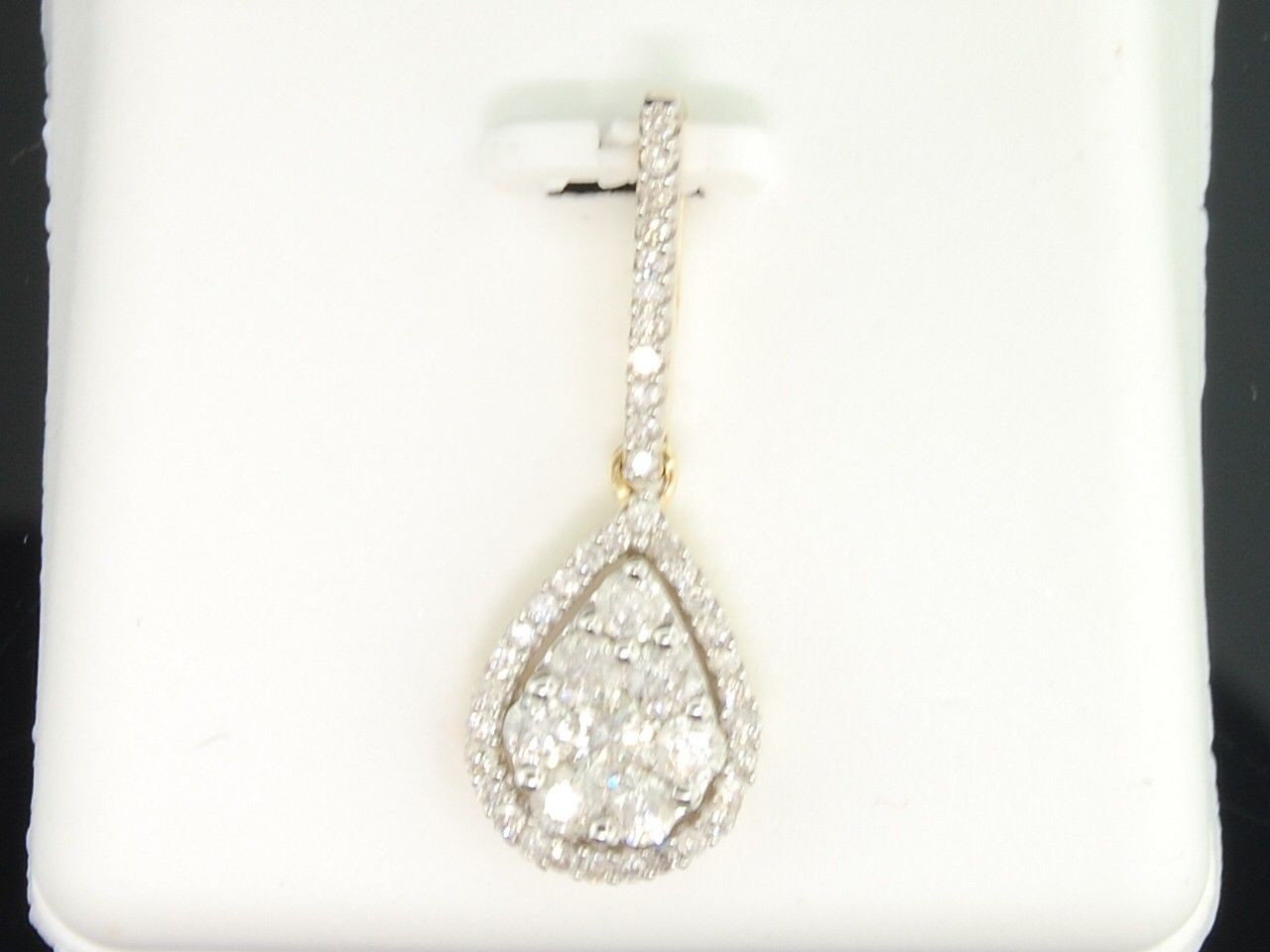 - Diamond Teardrop Pendant Ladies 10K Yellow Gold Round Pave Dangle Charm 0.78 Tcw