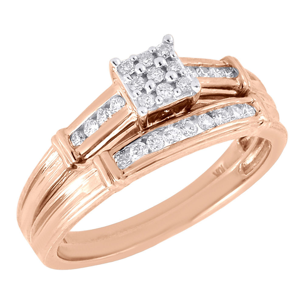 - Diamond Wedding Bridal Set 10K Rose Gold Ladies Engagement Ring 0.22 Ct.