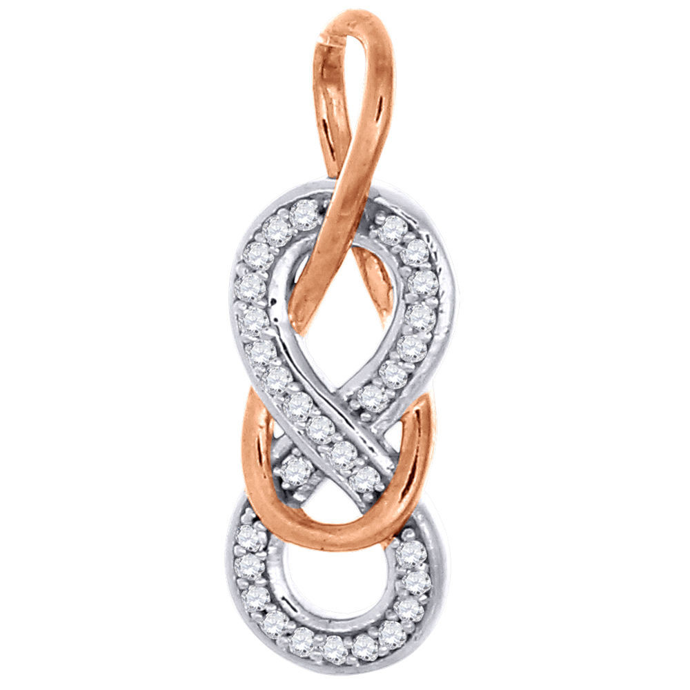 Up for auction is a brand new ladies diamond infinity pendant. It is set in real 10K White & Rose Gold. The diamonds are set close together for a brilliant shine in pave setting. This pendant is buffed to high luster, it has genuine round diamonds. This item can be given as a gift for any occasion.