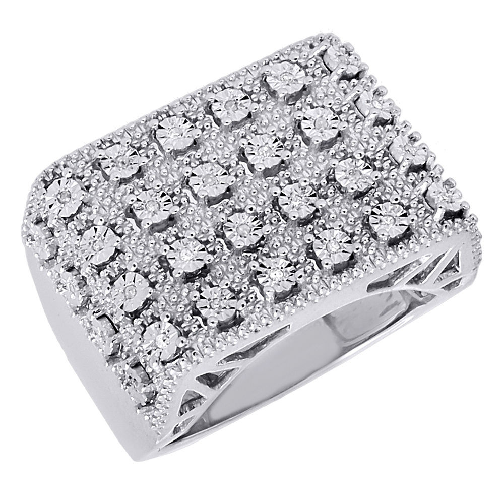 - Genuine Round Diamond Fashion Pinky Ring Mens .925 Sterling Silver 0.10 Ct.