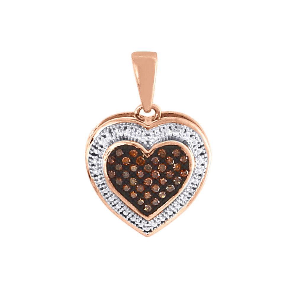 - Heart Red Diamond Pendant Ladies 10k Rose Gold Charm Necklace 0.12 CT.