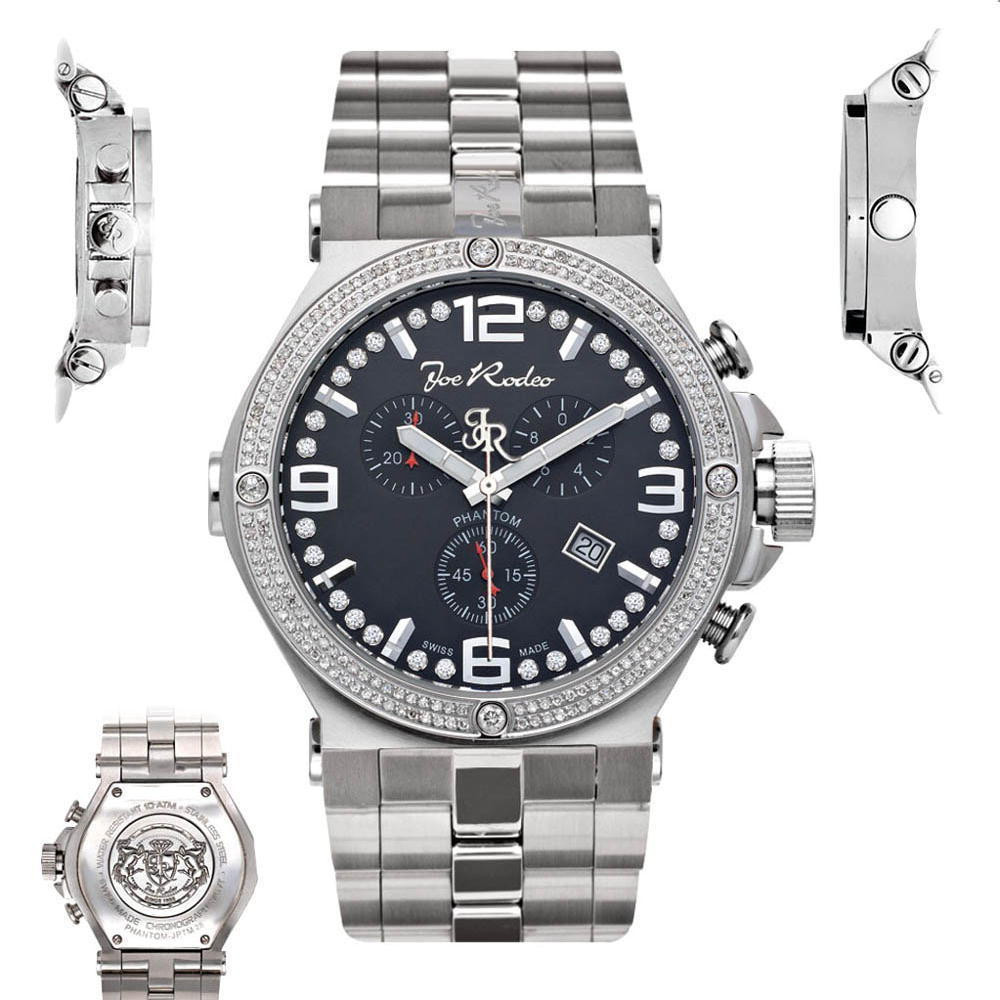 - Men's Diamond Watch Joe Rodeo Phantom JPTM12 2.25 Ct Chronograph Black Dial
