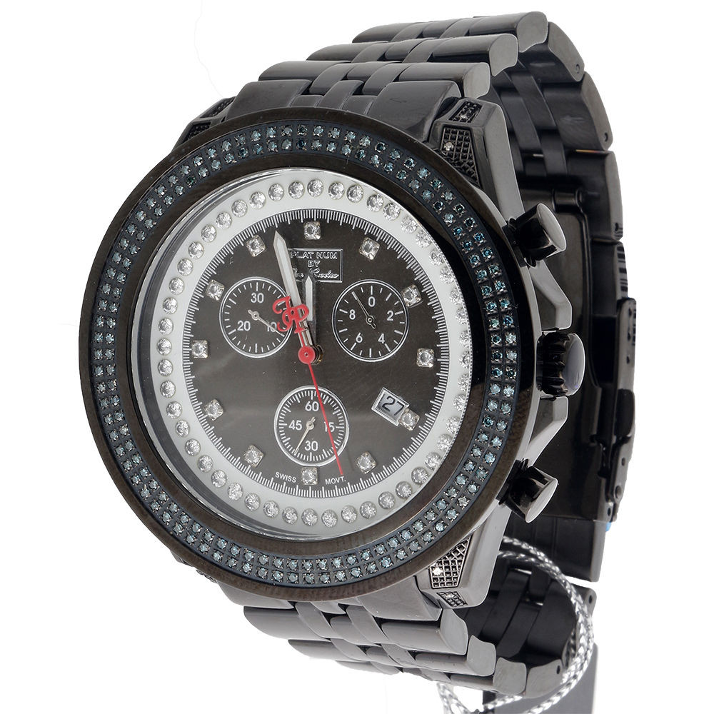(Joe Rodeo JRPT172; 1.75 carats of blue diamonds; Prong setting; SI2 - I1 clarity & H - I color; 48mm wide casing and 13mm thick casing; Black plated stainless steel; Luxury Diamond Watch)