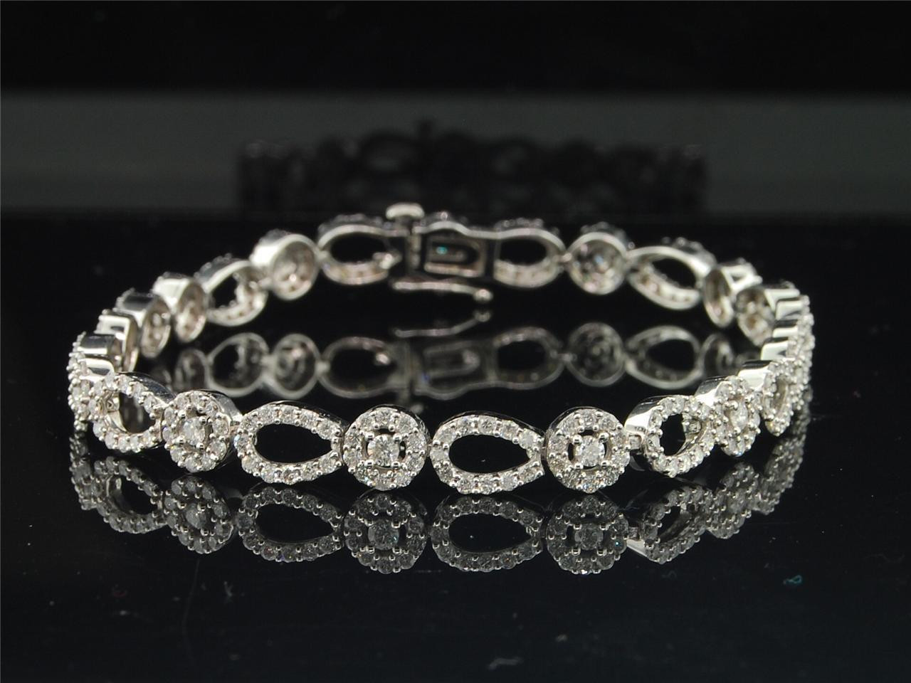 - Ladies 14K White Gold 2.98 ct. Diamond Round Halo Link Bracelet 7.25"