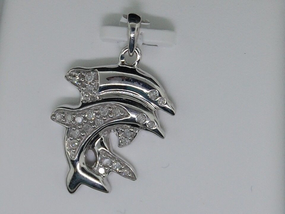 - LADIES .925 STERLING SILVER DIAMOND DOLPHIN CHARM PENDANT 0.15 CT.