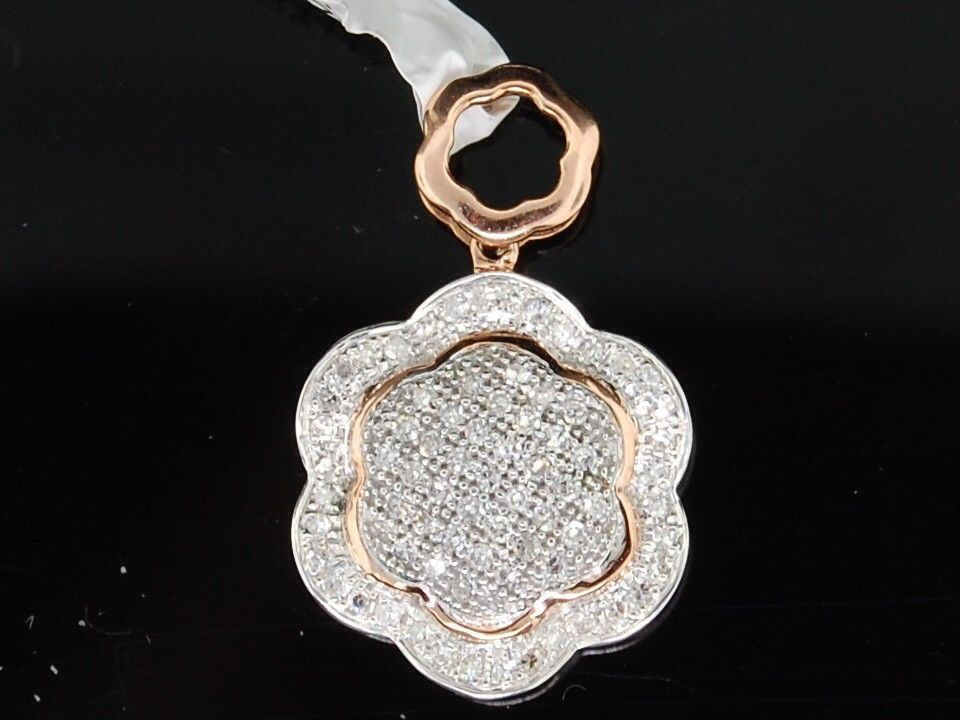 LADIES ROSE GOLD .25C PAVE DIAMOND FLOWER PENDANT CHARM