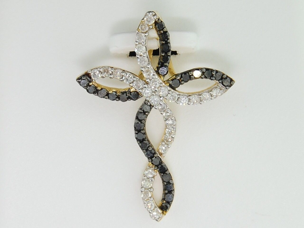 - LADIES YELLOW GOLD BLACK DIAMOND RELIGIOUS CROSS JESUS PENDANT CHARM NECKLACE