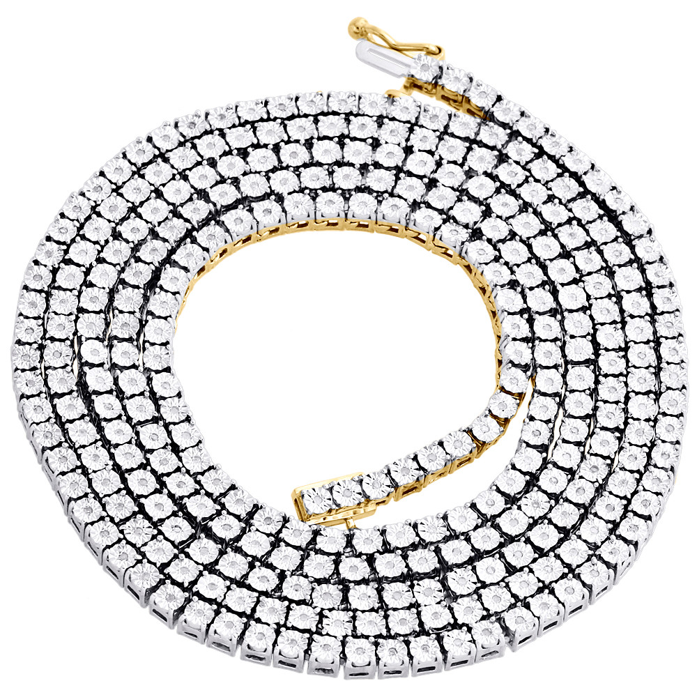 - Mens 1 Row Necklace Diamond Tennis Link Choker Chain 20" Sterling Silver 0.60 CT.
