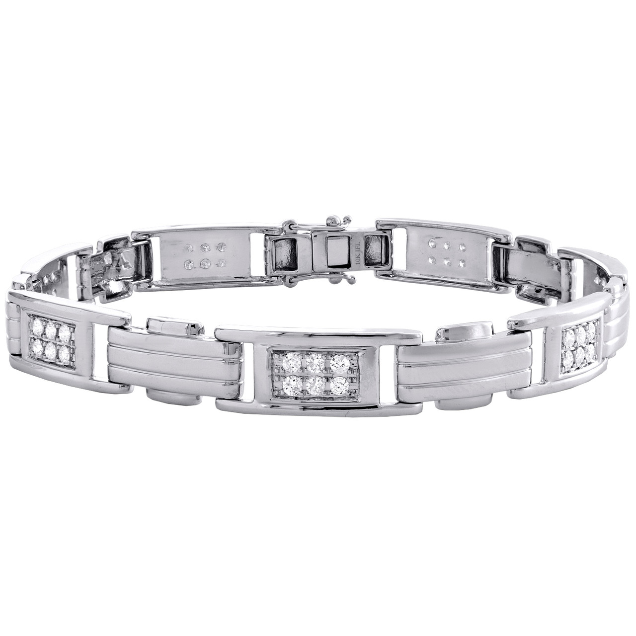(17.2 gr. of 10K White Gold | Total Carat Weight: 1.01 ct t.w. of White Diamonds | Length: 8" | Width: 8mm | Clarity: SI2 - I1 | Color: G - H | Men's Genuine Round Diamond Fancy Link Statement Pave Bracelet)