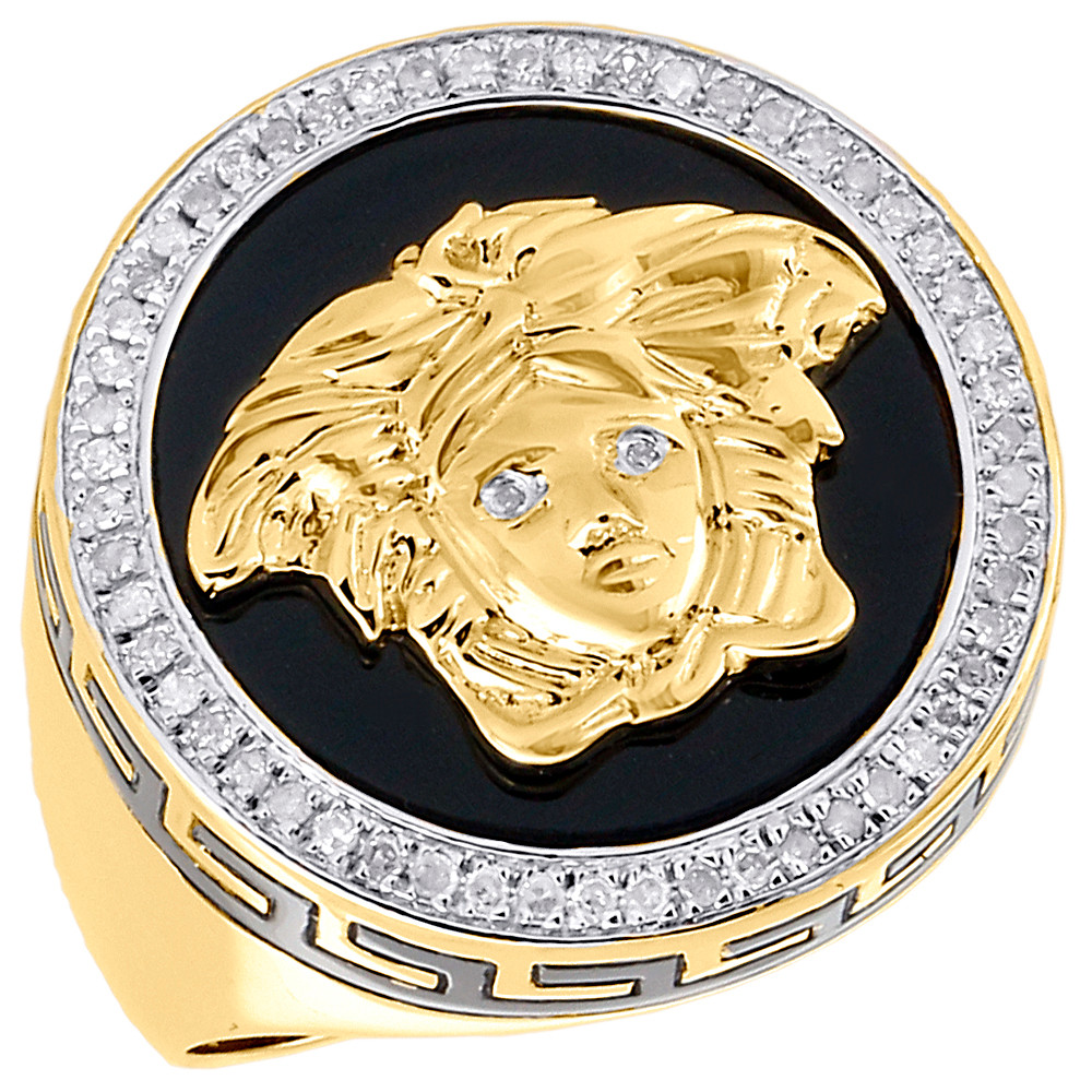 - Mens .925 Sterling Silver Genuine Round Diamond & Onyx Pinky Ring Medusa 0.50 Ct