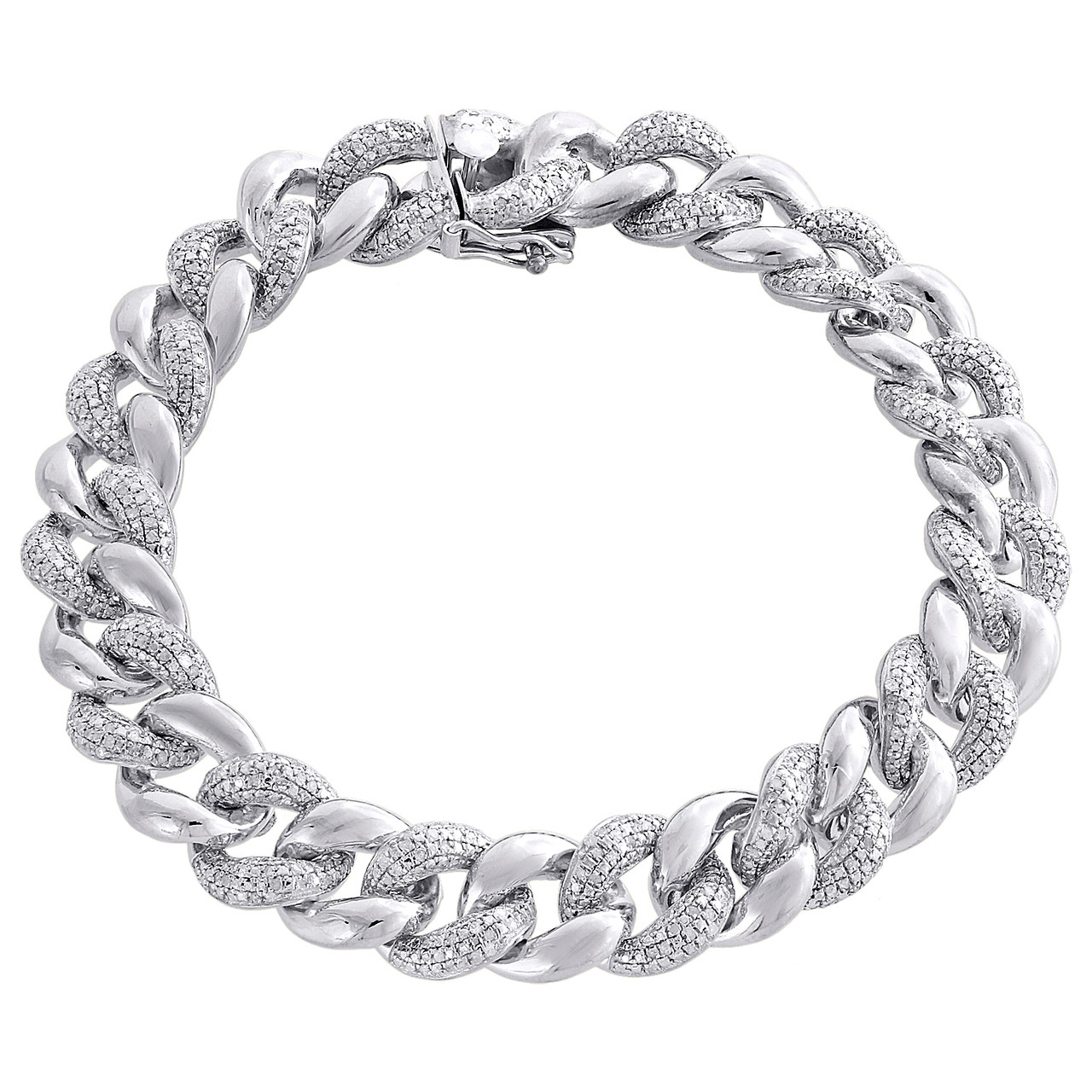 - Miami Cuban Diamond Bracelet Mens .925 Sterling Silver 8" Pave Round Cut 3 Ct.