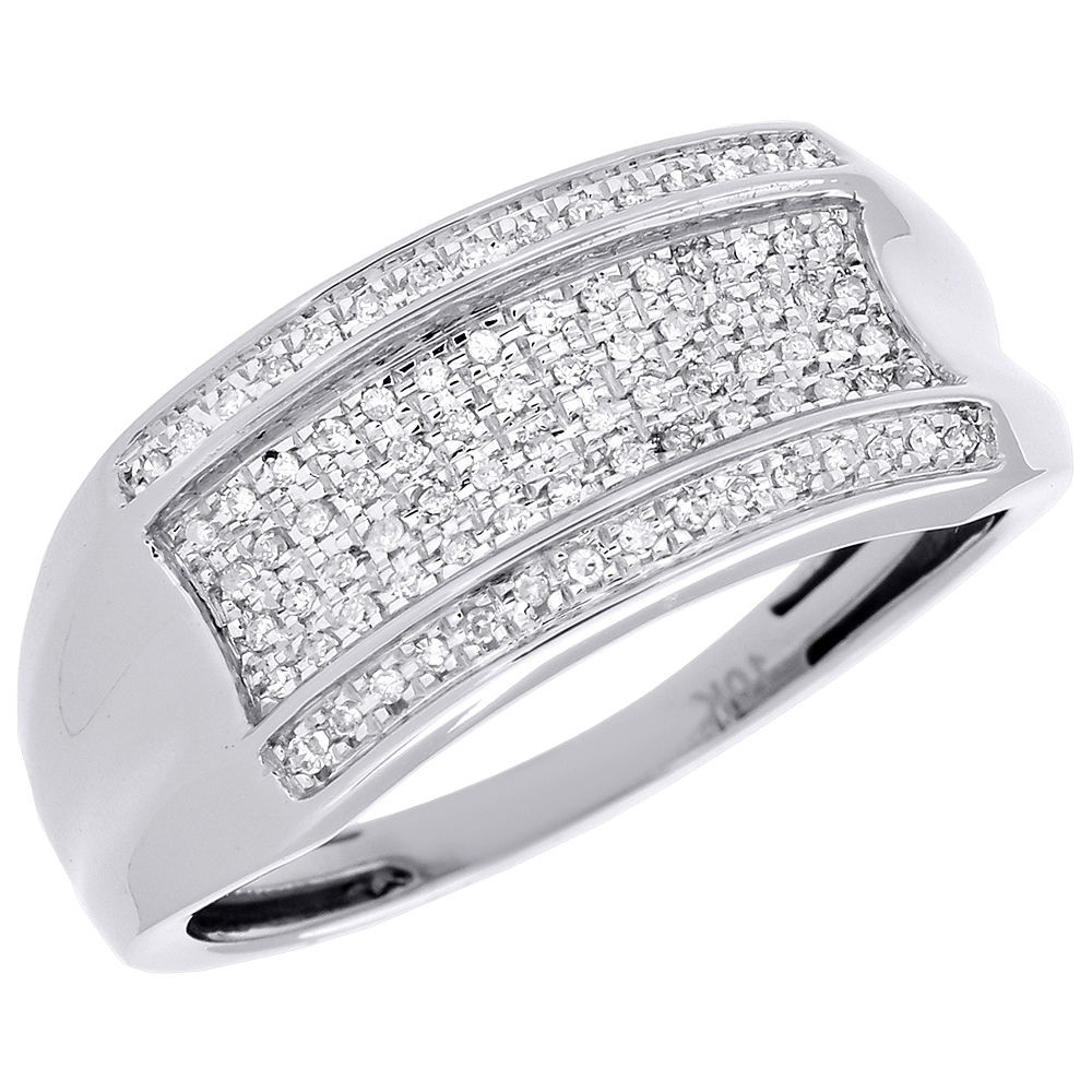 - Pave Diamond Wedding Band Mens 10K White Gold Round Cut Engagement Ring 0.14 Ct.
